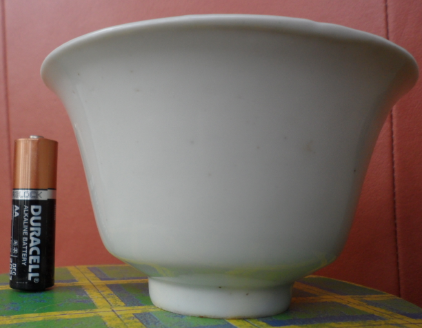![]() 康熙甜白釉碗: H6.8xW10.8; 造型优雅,来自欧洲收藏家L. Fischer。 |